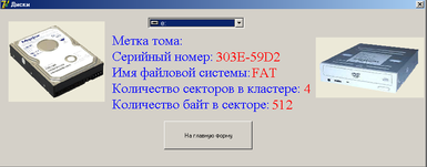 При нажатии на кнопку диски появляется окно (Рис. 5.6) на котором мы можем посмотреть параметры всех имеющихся дисков, и его параметров.