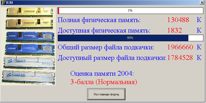 При нажатии кнопки память появляется окно (Рис 5.3) на котором можно посмотреть уровень загрузки памяти, и балл ее оценки.