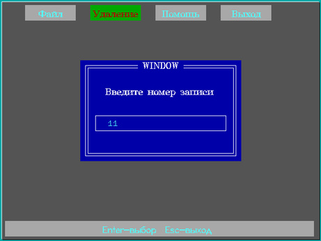 Рисунок В.4 – Вид экрана после выбора пункта меню “Удаление”-“По номеру”