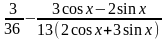 y:=3/36-(3*cos(x)-2*sin(x))/(13*(2*cos(x)+3*sin(x)));