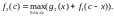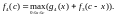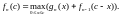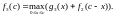 Пусть теперь n=2, т.е. средства распределяются между двумя предприятиями. Если второму предприятию выделена сумма x, то дополнительный доход на нем составит g2(x). Оставшиеся другому предприятию средства (c-x) в зависимости от величины x (а значит, и c-x) позволят увеличить дополнительный доход до максимально возможного значения 1(c-x). При этом условии общий дополнительный доход на двух предприятиях: