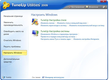 Включает в себя менеджер автозагрузки (TuneUp StartUp Manager), твикер интерфейса Windows (TuneUp WinStyler), "Системные сведения" (TuneUp System Information) и "Общие системные настройки" (TuneUp SystemControl). Отличительной особенностью менеджера автозагрузки является то, что в его настройках можно установить индивидуальный для каждого пользователя список программ. Раздел "Системные сведения" содержит подробную информацию об установленном аппаратном обеспечении, а также объеме занимаемой памяти, версии установленной Windows и т. д.
