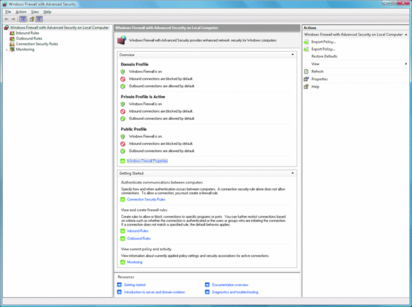 Каждый раз, когда вы подключаетесь к новой сети, Windows Vista создает профиль только для этой сети. Когда вы подключаетесь к этой сети снова, Windows Vista использует параметры, сохраненные в этом профиле. Одна из первых вещей, которые ОС спрашивает при подключении к новой сети – какая это сеть: общего пользования или частная. Это определяет тип профиля, который брэндмауэр Windows загружает для задания конфигурации и правил. Если вы хотите редактировать профили, выберите Windows Firewall Properties/Свойства брэндмауэра Windows в оснастке Windows Firewall with Advanced Security, затем выберите вкладку Private Profile/Частный профиль или Public Profile/Публичный профиль.