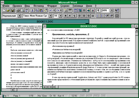 Рис 1.1 Пример MDI-приложения (в главном окне Microsoft Word открыты два независимых дочерних окна - BOOK1. DOC и BOOK2. DOC)