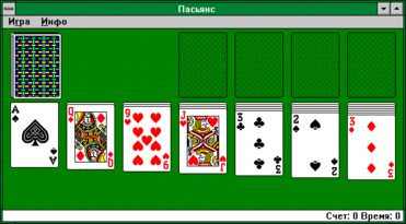 Примером SDI-приложения является игровая программа “Пасьянс", входящая в комплект поставки Windows (рис.1.2). В этом приложении открывается единственное окно, и пользователь одновременно может “раскладывать" на компьютере всего один пасьянс.