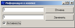 При нажатии на интересующую кнопку на главном окне она вдавливается, и красным цветом подсвечивается кнопка, на которую заменяется выбранная кнопка. При этом появляется информационное окно, содержащее следующие параметры:
