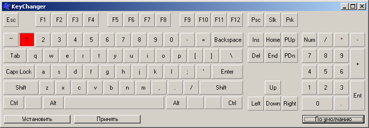 Для быстрого восстановления стандартных настроек клавиатуры предусмотрена кнопка «По умолчанию». Она загружает стандартную конфигурацию. Чтобы она вступила в силу, необходимо нажать на кнопку «Установить».