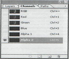 В палитре Channels (Каналы) отображается один или более каналов, которые и составляют изображение. Также с помощью этой палитры можно создать альфа-каналы, используемые для сохранения выделенных областей, и каналы заказных, или плашечных, цветов (spot color channel), необходимые при цветоделении.
