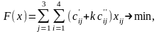 причем стоимость перевозки груза от четвертого поставщика до третьего потребителя изменяется в диапазоне 0≤k≤9.