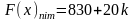 F(x3)min = F(x2)min +20 = 830 + 20*2 = 870, (k=2).