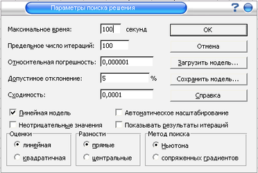 Рис. 4.4.3. Диалоговое окно «Параметры поиска решения»