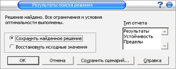 Рис. 4.4.5. Диалоговое окно «Результаты поиска решений