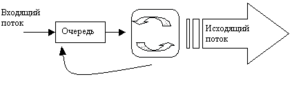 В данной работе СМО предназначена для обслуживания какого-то потока требований, поступающих в какие-то случайные моменты времени. Так как система циклично содержит квант q, то по истечению этого цикла если требование успело обслужиться, то оно покидает систему, в противном случае требование поступает в конец очереди. Далее время обработки этого требования уменьшается на квант q.