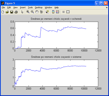 график среднего по времени числа заявок в очереди и системе на рисунке 4.10.