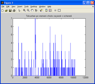 график текущего по времени числа заявок в очереди на рисунке 4.8;