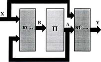 КСВХ - входная комбинационная схема; П - память; КсВЬ1Х - выходная комбинационная схема; Х- входной цифровой код; В - код возбуждения памяти; А - код состояния памяти; Y - выходной код.