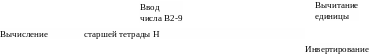 Число В поступает кодированное в двоично-девятиричной системе счисления, поэтому старшая тетрада умножается на девять, причём, поступающее число В отрицательно и его прямой код не совпадает с дополнительным. Следовательно, операнд В необходимо перевести в дополнительный код. Это осуществляется путём вычитания единицы с последующим инвертированием. Вычесть единицу можно путем сложения числа с константой вида 1 1 1 1 1 1 1 12 1.