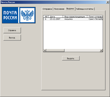 Рисунок 8 – Вкладка «Выдача» формы «Почта»