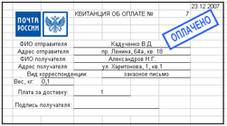 На рисунке 5 представлен образец квитанции об оплате отправки корреспонденции. Данная квитанция выдаётся на руки отправителю.