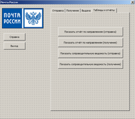 Вкладка «Таблицы и отчёты» формы «Почта» (см. рис. 9) содержит 4 кнопки для 4 отчётов соответственно. Подробно отчёты по направлениям и сопроводительные ведомости описаны ниже, в разделе «Описание отчётов».