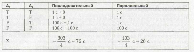 Другая причина повышенного ускорения иллюстрируется примером. Пусть нам нужно выполнить логическую операцию A1 v A2, где как A1 так и А2 имеют значение «Истина» с вероятностью 50%, причем среднее время вычисления Ai, обозначенное как T(Ai), существенно различается в зависимости от того, является ли результат истинным или ложным.