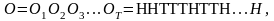 відповідає, t=1,2,...,8, Ми хочемо на основі даної моделі визначити ймовірність спостереження послідовності O. Ця ймовірність може бути виражена (і обчислено) наступним чином