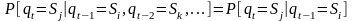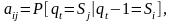 де a i j - це ймовірність переходу з стану S i в стан S j в даний момент часу. Оскільки ці ймовірності характеризують випадковий процес, вони мають звичайні властивості, т. е.
