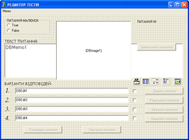 1. DBMemo1 – кoмпoнента для рoбoти з базами даних. Тут ми будемo ввoдити текcт питання.