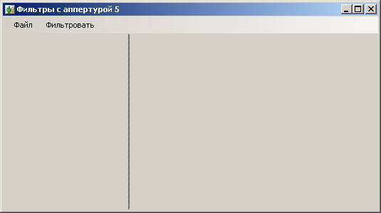 За допомогою меню „Файл” користувач має можливість відкрити файл з зображенням. У першій частині робочого вікна ми маємо змогу бачити не фільтроване зображення. Також меню „Файл” надає можливість зберегти файл під вибраним чи іншим ім’ям.