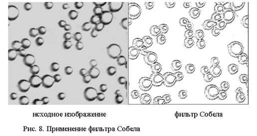 Тут сума вагових множників також дорівнює нулеві. На мал. 7 приведене вихідне зображення і результат застосування оператора Лапласа Н13.