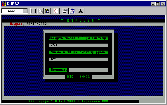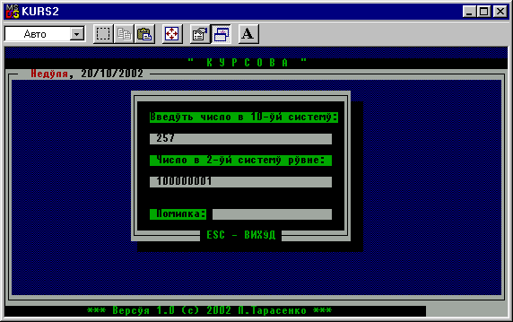 gotoxy(24,7);write('Введўть число в 10-ўй системў:');