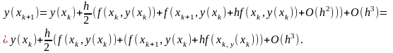 Невідоме значення у(хk+1), що входить до правої частини цієї рівності, можна обчислити за формулою (1.7). Підставивши його в праву частину рівності (1.11), дістанемо рівність: