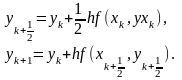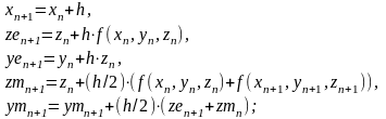 Звідси для удосконаленого методу Ейлера-Коші матимемо такі розрахункові формули: