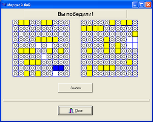 Если первым свои корабли потерял компьютер, игроку выводится сообщение о победе