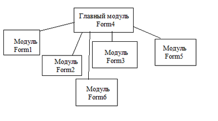 Главным модулем является модуль Form4. В этом модуле предусмотрен переход к другим модулям, с помощью объектов Command. При нажатии на любую кнопку главная форма скрывается и ее заменяет другая форма которую вызывает событие Click данной кнопки. На форме также предусмотрена кнопка выхода, в которой предусмотрено случайное нажатие кнопки. Например, если пользователь, случайно, нажмет на кнопку выхода появится окно, которое будет запрашивать подтверждение на выход. Данная опция описана с помощью команды MesageBox.