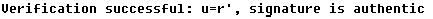 Если условие r’=u выполнено – подпись подлинная. Результат проверки подписи находится в файле verification result.txt.