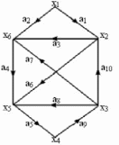 Граф G (рис.2.1.1) задается множеством точек (вершин) х1, х2,..., хn. (которое обозначается через Х) и множеством линий (ребер) а1, а2,...,аm. (которое обозначается символом А), соединяющих между собой все или часть этих точек. Таким образом, граф G полностью задается (и обозначается) парой (Х, А). Если ребра из множества А ориентированы, что обычно показывается стрелкой, то они называются дугами, и граф с такими ребрами называется ориентированным графом.