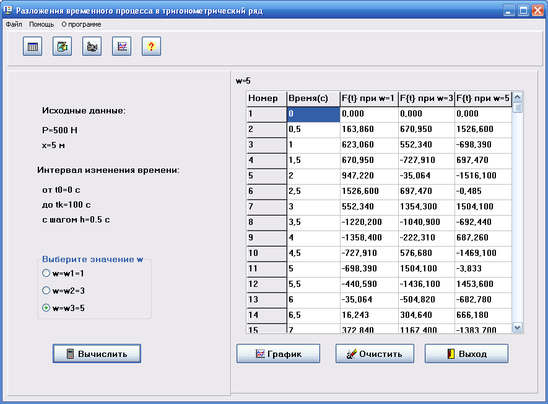 Разложения временного процесса в тригонометрический ряд осуществляется при вычислении численных значений при использовании следующей функциональной зависимости: