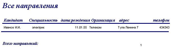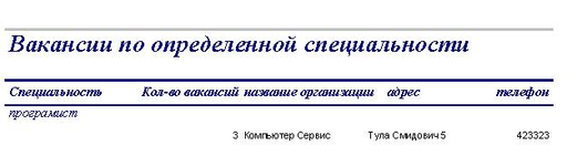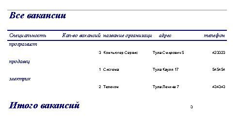Результатом работы БД являются отчеты, построенные на основе определенных запросов, которые вместе с отчетами приведены ниже:
