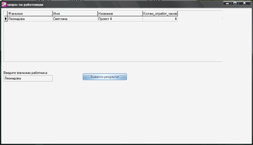 4) запрос, показывающий сколько часов и по какому проекту отработал определённый работник