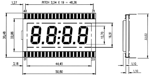 Данный индикатор подходит по всем критериям. Он является жидкокристаллическим, эти индикаторы характеризуются низким энергопотреблением по сравнению со светодиодными, но у них есть и недостатки: плохая видимость пли плохом освещении, плохая работоспособность при низкой температуре. Индикатор DE-119 имеет следующий вид: