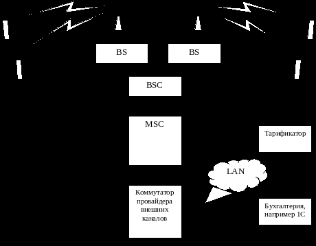 Для предоставления услуг связи оператору необходимо иметь определенную инфраструктуру, которая в минимальном варианте состоит из компонентов, показанных на следующем рисунке.