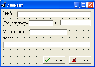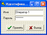 Окно «Идентификация» предназначено для ввода пользователем имени и пароля, которые необходимы для получения полномочий конкретному пользователю. При неправильном вводе окно появляется повторно, а при правильном – появляется главное окно абонентской базы.