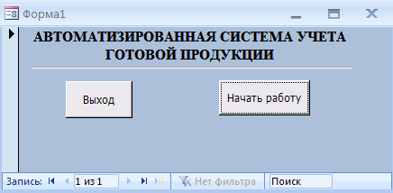При запуске АИС на экране появляется стартовая форма (рис. 3.2), приглашающая начать работу (перейти к главной форме), либо завершить ее.