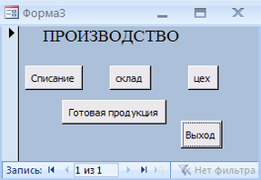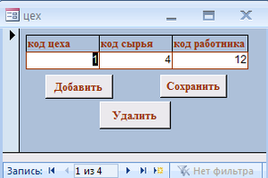 Форма «Цех» позволяет просмотреть данные о цехе, где производиться продукция.(Рис 3.13).