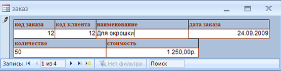Форма «Заказ» показывает данные о заказе. (Рис 3.19)