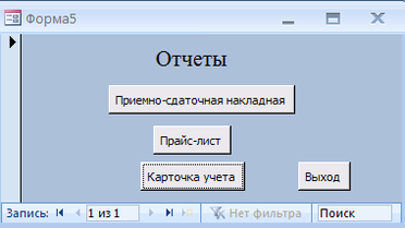 Форма «отчеты» (рис. 3.6) позволяет просмотреть приемно-сдаточные накладные, прайс-лист, карточки учета.
