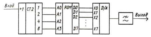 Рисунок 3.3.4 – Цифровой формирователь синусоидальных сигналов на основе ПЗУ