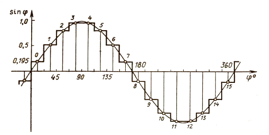 Количество ступенек сигнала для прямого и обратного каналов совпадают. Высота i–й ступеньки аппроксимированной синусоиды в относительных единицах определяется по формуле: