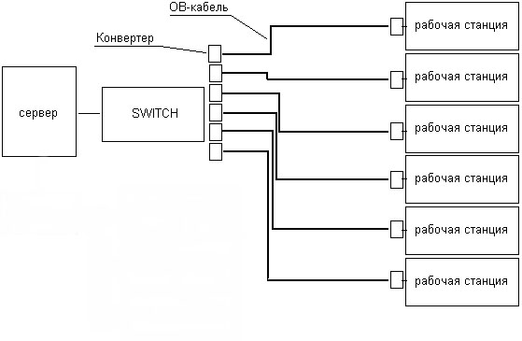 Необходимыми составляющими оптической связи будут являться собственно волоконнооптические кабели, оптоэлектронные преобразователи (GBIC – GigaBit Interface Converter), FC-контроллеры для управляющих компьютеров и FC-концентраторы или FC-коммутаторы в зависимости от условий.